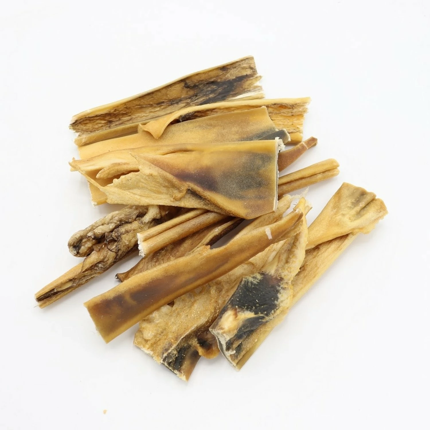 De runderkophuid is op een natuurlijke manier gedroogd en bevat geen kleurstoffen of conserveermiddelen. De gedroogde runderkophuid van 15 cm komt uit Europa. Kleur en model wisselen per levering.