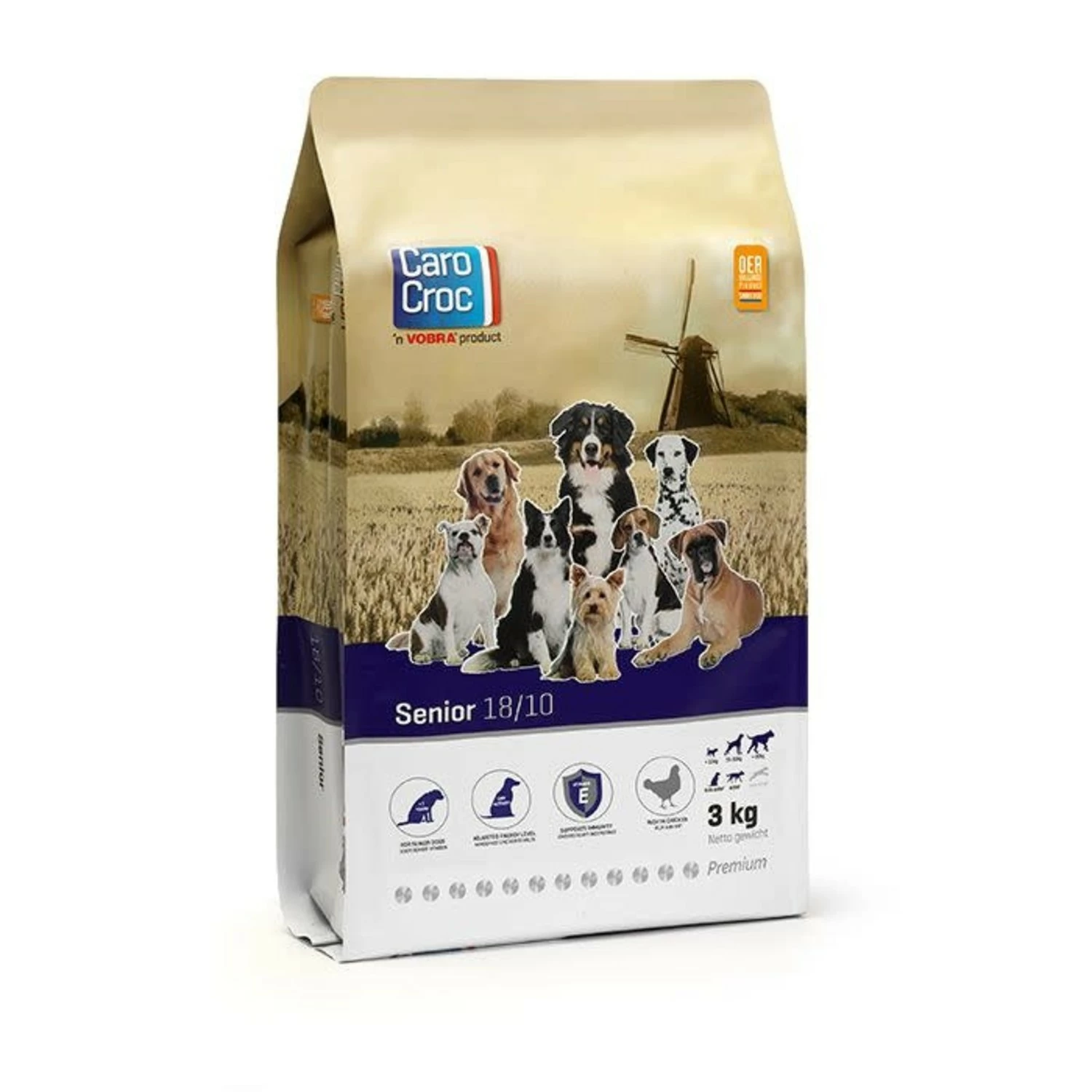 De samenstelling van CaroCroc Senior is afgestemd op de behoefte van oudere honden. Hierdoor wordt de nier- en leverfunctie ondersteund. CaroCroc Senior bevat omega-3 en -6 vetzuren en 18% gevogelte.