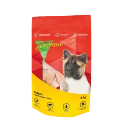 Energique Puppies is een compleet samengestelde vers vleesmaaltijd speciaal ontwikkeld om in de natuurlijke voedingsbehoeften van je pup te voorzien. In Energique voor Puppy’s zit extra eiwit uit hoogwaardig spiervlees voor een gelijkmatige groei. Daarnaast bevat Energique Puppy’s een uitgebalanceerd gehalte aan calcium, fosfor en een goede calcium : fosforverhouding, voor ontwikkeling van sterke botten.
