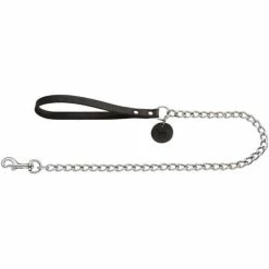 Hunter Hondenriem Ketting – Leren handvat Zwart