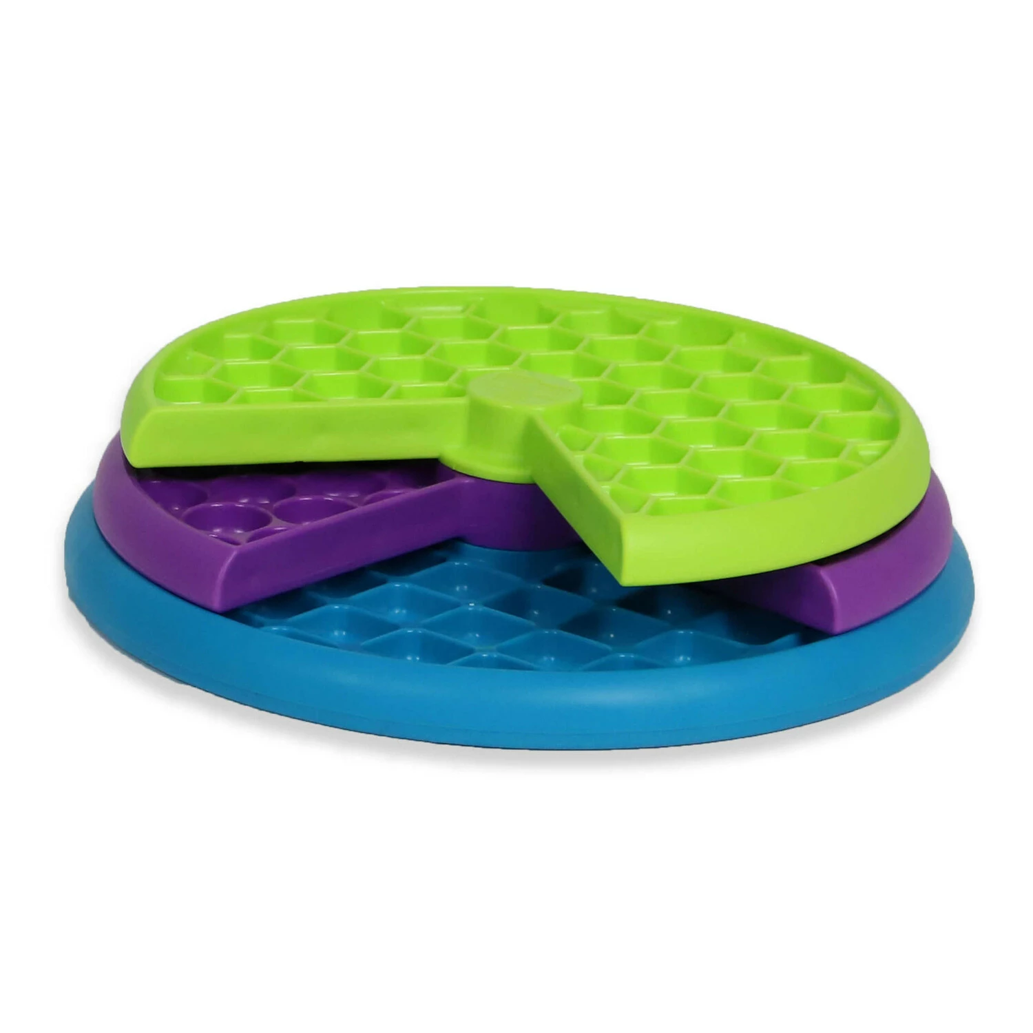 De Nina Ottosson Lickin’ Layers is een spel en slowfeeder in één! De Lickin’ Layers bestaat uit drie lagen die verdeeld zijn in meer dan 100 compartimenten! Door de bovenste lagen te laten draaien komt jouw hond bij het al het lekkers. In de Lickin’ Layers kan naast snoepjes ook droge brokken, natvoer of vers vlees verstopt worden. De lagen zijn eenvoudig uit elkaar te halen om zo het voer te verdelen.